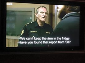 Nordic Noir means that when you watch the TV, you really have to watch it. You can’t listen to it while quickly checking Facebook, you can’t nip out to put the kettle on to hear it in the background, because you have to be lined up with the subtitles at all times. And because it’s terribly Scandinavian, you’re not even going to get a steer from the pitch of voice, when a character is in a murderous rage, for example. By the way, don’t think for a moment that you’re naturally going to pick up any language skills on the side, by listening to dialogue with subtitles (I’ve been watching and listening for several months now, and can just about tell you what ‘Tak’ means). My theory is that quite a bit gets lost in translation with subtitles, and that might be why they seem, well a little out of line with the picture. I’ve even started to collect my personal favourites, as they just seem so bizarre – I can’t help feeling that the role of ‘BBC4 Subtitle Co-ordinator (Post Watershed)’ is a job I’ve really missed out on. Compare these subtitles from ‘Trapped’ to the dialogue of, say, Inspector Morse, and you’ll see what I mean: