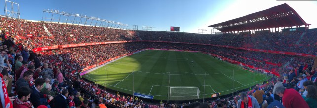 Slightly disturbing was the several hundred people following the procession in blackface – something that we weren’t prepared for at all. There’s quite a bit of reaction to this on the web at the moment, so have a look some time and see for yourself. I can’t imagine the sort of reception that this would get at home, and there seemed to be a complete ambivalence to it as a ‘tradition’. A couple of days later, I managed to blag a ticket to Sevilla FC, who were at home to Atletico Madrid, at a stadium that was beyond awesome.