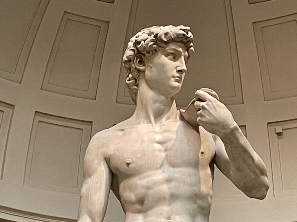 There’s another one at the Loggia outside the Palazzo Vecchio, but it’s dwarfed by the other statues, and by Neptune on the other side. The original marble sculpture, which Michelangelo sculpted from a spare piece of marble in the cathedral workshop yard, is in the Accademia gallery, which is devoted mostly to sculpture. Inevitably most people are there to see the nine ton, 17 foot statue of David, and once you turn the corner in the gallery and see it at the end of the corridor you can’t but ignore all the other astonishing pieces that are nearer to you. I was expecting a similar experience the one you get in places like the Louvre, with a limited time allowed in front of it, but people were just able to mill for as long as they wanted to, alternating between gazing up and marvelling, and relentlessly taking selfies: