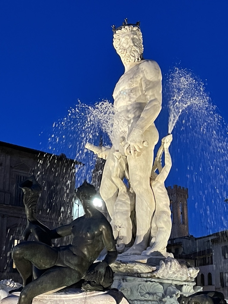 Back to the Loggia to wonder at a few amazing statues – we thought it was impressive by day but then we saw it by night and it blew us away: