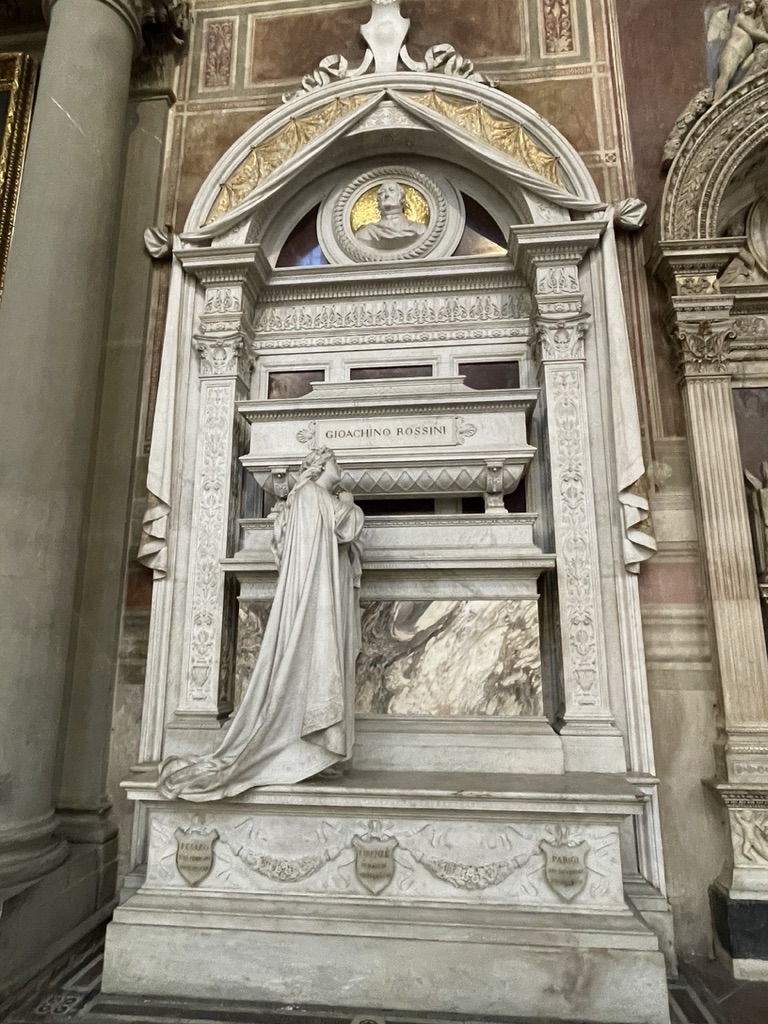 We spent the last day in Florence at the Basilica di Santa Croce – a little way out of the centre, and very much the place to be buried if you’re anyone from round here. So there are memorials or graves for Leonardo da Vinci, Dante, Galileo, Machiavelli, Rossini, Marconi…and many many more: