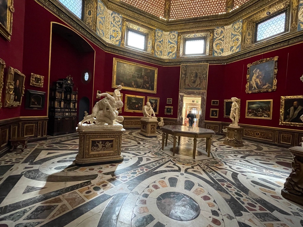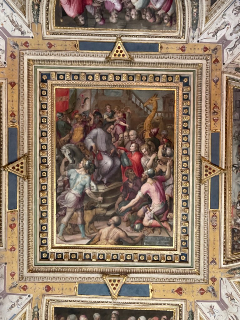 And then, post-breakfast, we went exploring. The Uffizi on the first day – astonishing pictures on the walls and even better ones on the ceilings. Botticelli to remind us where we were, Caravaggio’s Medusa, to give us sleepless nights, and more religious iconography than you can shake a stick at.