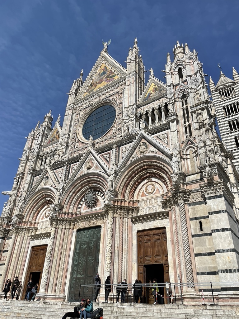 We took the train out to Siena as we’ve been told it was ‘like Florence but smaller and better’, and it was indeed smaller, but not necessarily better for that. The cathedral was amazing both inside and out – the outside reminded us of an elaborate wedding cake and the inside of the Cat in the Hat movie – it was by far the stripiest thing we saw all week: