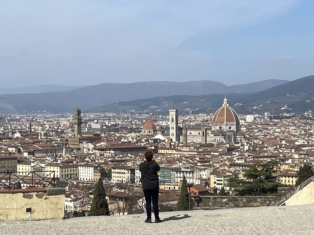 After a couple of gallery days, we crossed the river again, and wandered up to the Piazza Michelangelo – amazing looking down on the city, then further up the monastery of San Pietro which had even better views:
