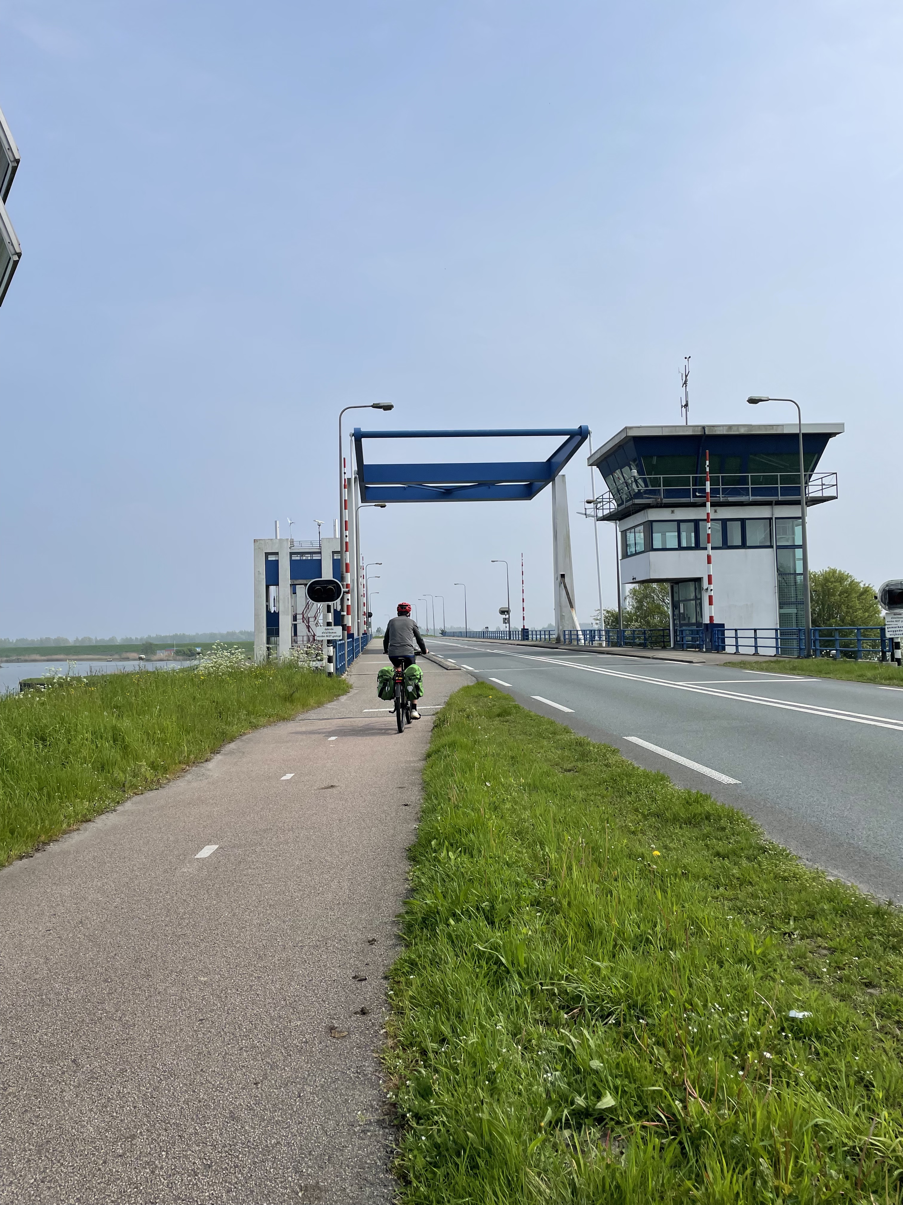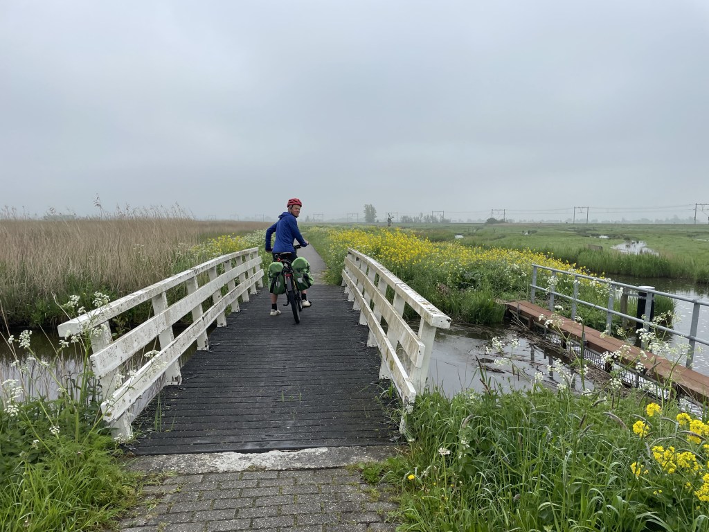 So we headed up the coast, a route we knew reasonably well, heading past Den Haag and Katwijk and Noordwijk, where we had the tour’s first appletaart, and on into Haarlem, where we sat down with some impossibly beautiful people and ate a very trendy Sunday brunch. Because we were off the ferry early, we’d travelled most of the trip by lunchtime, so pootled leisurely along to Zaandijk, where we were staying that night. The route through to Zaandijk has many things to love – fabulous cycle lanes, lovely villages, lots of wildlife, no litter, and not really much in the way of people. Those that you do see seem pretty happy to see you, although the ones that we spoke to seemed a bit nonplussed when we told them that we were here to cycle across the Maarkerwaarddijk.