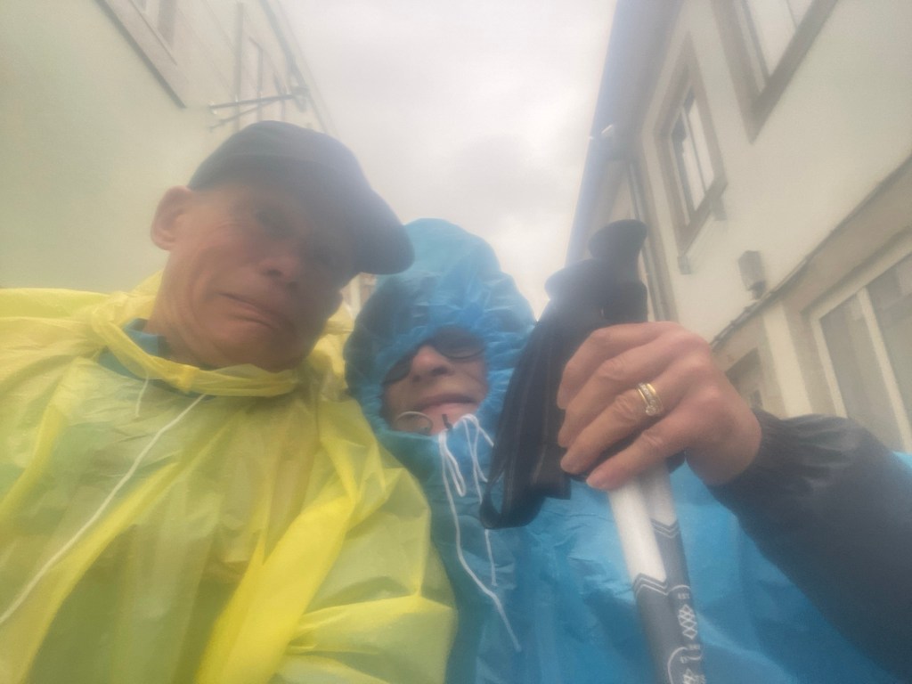 Day 4 brought further storms which would apparently be ‘over in a couple of days’. Most of our clothes were relatively dry and we were quite keen to keep them that way. We’d noticed other pilgrims on day three wearing huge capes that covered them and their rucksacks, and also wearing smug smiles as they eased past our shivering forms. Was it wrong to envy other pilgrims? SI wasn’t around to ask, so we decided not, and so I set off after breakfast, again in shorts and umbrella, to a tiny shop that we’d noticed the night before, that had a handwritten ‘ponchos’ sign in the window.
