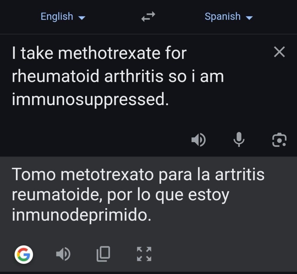One of the many wonderful things about my wife is the way that she manages her health. She has a really nasty disease called rheumatoid arthritis – if you don’t know about this, it is unhelpfully labelled, being neither rheumatism nor arthritis – rather, it is an autoimmune disease that can seriously inflame and damage tissue and joints. She manages it brilliantly with some unpleasant drugs and a great deal of very cold water, and refuses to let it define her. But the side effect of the drugs means that she’s immuno-suppressed, meaning that her body is less able to fight infection. So this sign of infection was a bit of a red flag, and by about 8pm that night we were on our way to Vigo hospital for an evening with Spanish A&E.