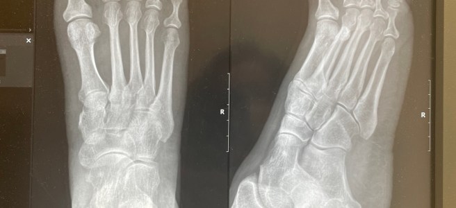 You might be eating your breakfast with this so I’ll not share the pictures of the wounds, but here’s a picture of the foot post-dressing.