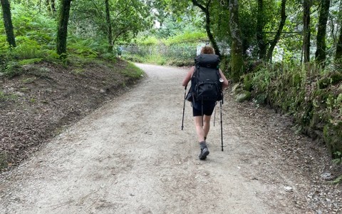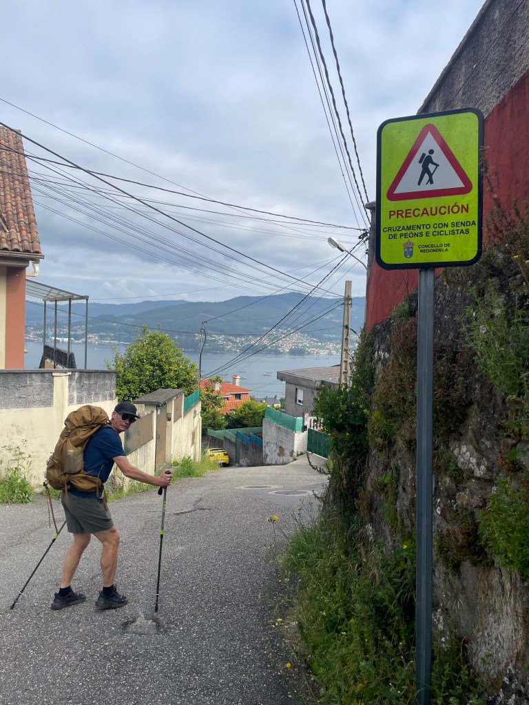 To day one then, and we strapped ourselves into Beast 1 & Beast 2. I appreciate that this will mean more to you if you’ve read part one of this blog, but if you haven’t, this might be time to use your imagination and possibly remind yourself of what a terribly sordid mind you have. Anyway, an easy four hours in the sunshine, out of Vigo and north east along the coast to Redondela. Lots more people on the route than in March (unsurprisingly) and already sorting themselves into a hierarchy. At the top of the hierarchy are the pilgrims who are carrying their own gear in big rucksacks and staying in albergues, which are the hostels on the route. Next level down are those, like us, who are carrying their own gear but have opted to stay in cheap hotel rooms, primarily to avoid sleeping and snoring in noisy dormitories. These two levels can also be separated by the use of wooden staffs for balance, as opposed to walking poles, which mark out the seniority of pilgrims, as well as Tolkien characters. Next level down are the hikers who’ve arranged to have their luggage transported between stages. This is a very good idea if, say, you can’t function without hair straighteners and a travelling library of an evening, and it’s something that we’ve done in the past on other walks, but it kind of minimises the suffering. There really is nothing like the feeling of 10kg on your back to make you lean forward onto your stick and at least form the silhouette of a medieval pilgrim: